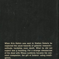 When Kris Kelvin was sent to Station Solaris he expected the usual hazards of galactic research-solitude, hardship, even death. What he did not expect was a haunting. For a strange simulacrum of his dead wife Rheya suddenly became his constant companion, the gift of Solaris' ruling intelligence, A SENTIENT OCEAN, whose vast mind and enigmatic personality was to try and trouble those humans who contacted it, sometimes to the point of suicide...