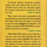 This Nebula Award-nominated "work of awesome originality" (Robert Silverberg) is a mind-blowing exploration of telepathy and power on an Earth-like planet. Earthman Jai Vedh was on a star voyage when his ship blew up, leaving him stranded on an uncharted Earth-like planet. In this strange new land, he's amazed to discover a colony of humans who lost contact with their home world centuries before. They've developed telepathy, telekinesis, and teleportation-and structured a sophisticated social system out of these abilities. Under the tutelage of a female mentor named Evne, Jai Vedh begins to develop his own mental powers. But when an unexpected rescue arrives, the Earth he returns to is nothing like he remembered ... Wildly imaginative, wholly original, and boldly experimental in form, And Chaos Died "is a spectacular experience to undergo" (Samuel R. Delany).