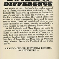 On August 12, 1992, England's tiny nuclear arsenal fell on Ireland, on South Africa, and finally on China. Instantly, the planet went up in flames. In the first half year of what was to be the War of '92, half the Earth's population perished. The United States was reduced to a vast under peopled land-and, to make matters worse, Texas had seceded and taken her precious oil reserves. But Israel, virtually untouched in a world ravaged by war, was painfully overpopulated. So Sol Iglestein and Myra Kalen had come to America looking for a place to settle. As mercenaries on the side of the Union in its war with Texas, the Israelis had been promised land in exchange for their services. Leading their begraggled troops into the heartland of Texas, Sol and Myra head up Operation King. Mission: Rescue the President of the United States!