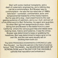 Start with medical transplants, add a dash of cybernetic engineering, and a talking dog can be commonplace. But Bowser was not commonplace--he was the top-rated star of 1999's television--comedian, commentator, actor, and temperamental headache of the media masters. But he was still a dog--man's best friend to the vast gaping audience of watchers, and a cur, mutt, and son of a five-letter-word to Bert Schenley, his agent and guardian. So when Bert got two assignments at once--both taking him and Bowser to the battle front in Lower California where the various guerrillas and rebels were making news, history and hysterics, it was the climax. Bowser was determined to keep on grabbing the headlines, Bert was determined to keep a grip on his own life, and the rest were equally set on blotting them both out.