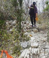 Findings from 2019: The mapping team made their way through the thick overgrowth to find and plot historic structures. We located and mapped nine structures and two field walls, establishing Hughes as the most extensive historic plantation site remaining on Anguilla today.