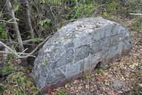 Locus C is the largest structure in total area at Hughes Estate consisting of a cistern, catchment area, field fence, and a small adjoining building. The largest structure of Locus C consists of rectangular (18x19 meter) raised foundation containing a 2 meter deep cistern (3x10 meter W and L). Rainwater collected in the paved catchment surrounding the cistern. Locus C would have been the plantation's main fresh water source. The cistern was built of cut limestone, brick, and cobbles, and was coated in a brick-colored plaster.