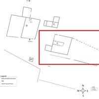 Locus C also consists of a large fence of stacked limtestone which connects to the NE corner of the raised catchment foundation and encloses a large outdoor area . The fence may have protected a garden or field crop from grazing animals or other intruders. A small building adjoins the SW wall of the catchment area, which may have been the living quarters of the enslaved people who worked in the nearby field. There is evidence that a paved path may have surrounded the foundation of the catchment area and adjoining building.