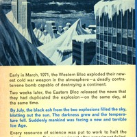 Early in March, 1971, the Western Block exploded their newest Cold War weapon in the atmosphere-a deadly contraterrene bomb capable of destroying a continent. Two weeks later, the Eastern Bloc realized the news that they had duplicated the explosion-on the same day, at the same time. By July, the black ash from the two explosions filled the sky, blotting out the sun. The darkness grew and the temperature fell. Suddenly mankind was facing a new and terrible Ice Age.