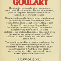 The situation bore an alarming resemblance to the classic Gothic situation. But since it was taking place on the planet Esmeralda in the Barnum system, there were differences. There was a disputed inheritance -- an interplanetary robot-making business. There was the uncle who had taken charge, a cyborg now, fifty per cent human, fifty per cent machine, and one hundred per cent smiling deceit. There was the innocent young heir, the boy, Tad, in the clutches of this uncle and his sinister household. Even the weather was foggy and gloomy, and Tad could find no friend to help him from what seemed certain doom.That is until he stumbled upon the wreckage of the family's greatest engineering triumph, the super-robot Electro. With nothing better to do, he secretly repaired it. And then, once Electro was on his feet and ticking electronically away, wicked cyborg uncle -- watch out!