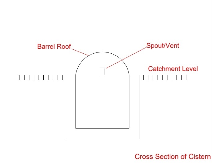 Locus C is the largest structure in total area at Hughes Estate consisting of a cistern, catchment area, field fence, and a small adjoining building. The largest structure of Locus C consists of rectangular (18x19 meter) raised foundation containing a 2 meter deep cistern (3x10 meter W and L). Rainwater collected in the paved catchment surrounding the cistern. Locus C would have been the plantation's main fresh water source. The cistern was built of cut limestone, brick, and cobbles, and was coated in a brick-colored plaster.