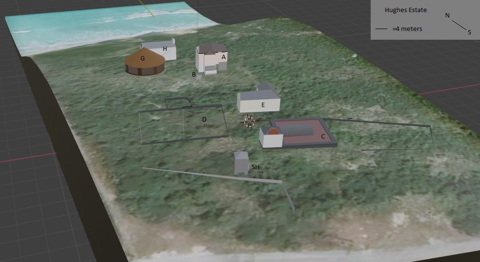 3D map of site historic structures over topographic data built in Blender with GIS plugin.