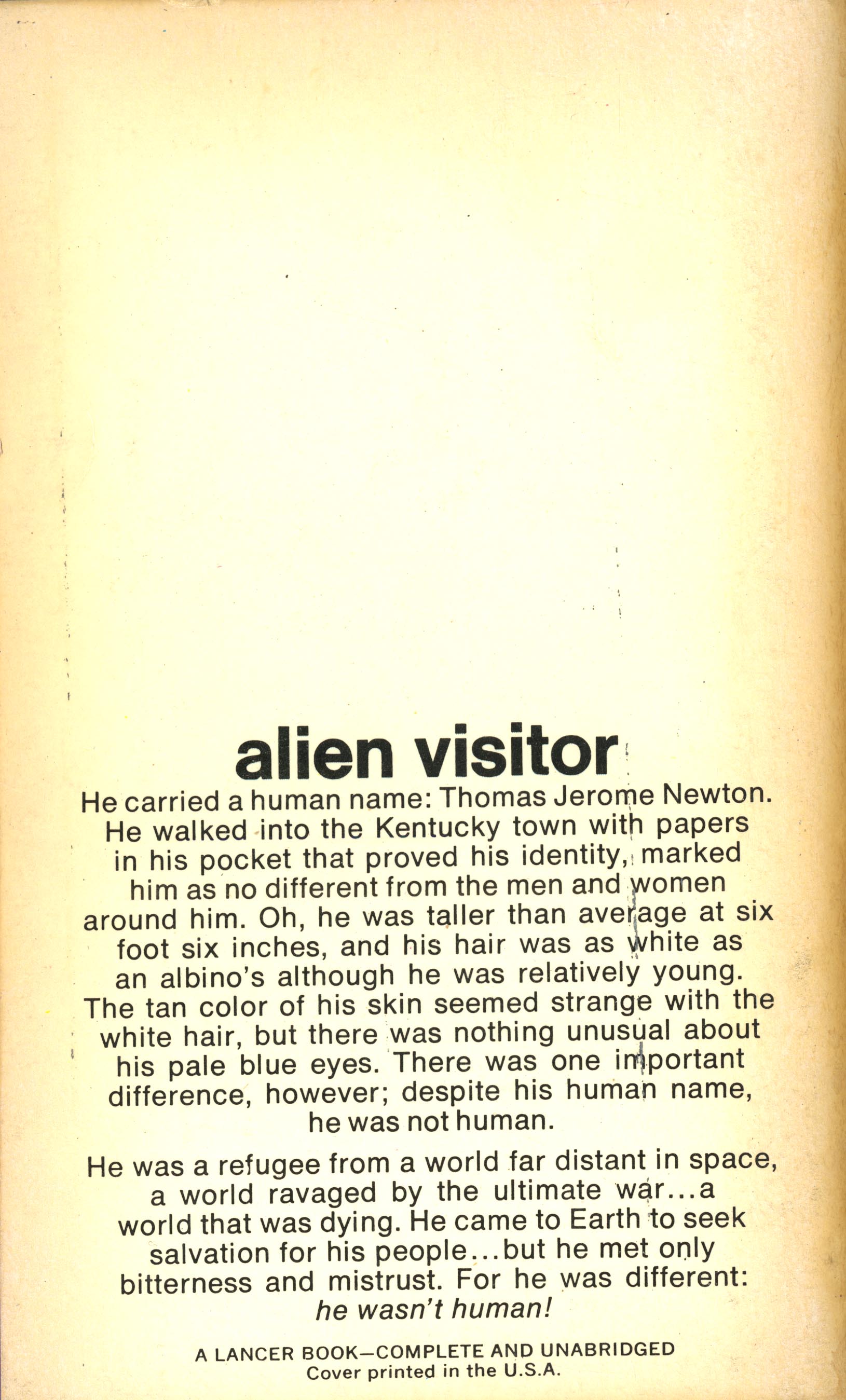 T.J. Newton is an extraterrestrial who goes to Earth on a desperate mission of mercy. But instead of aid, Newton discovers loneliness and despair that ultimately ends in tragedy.