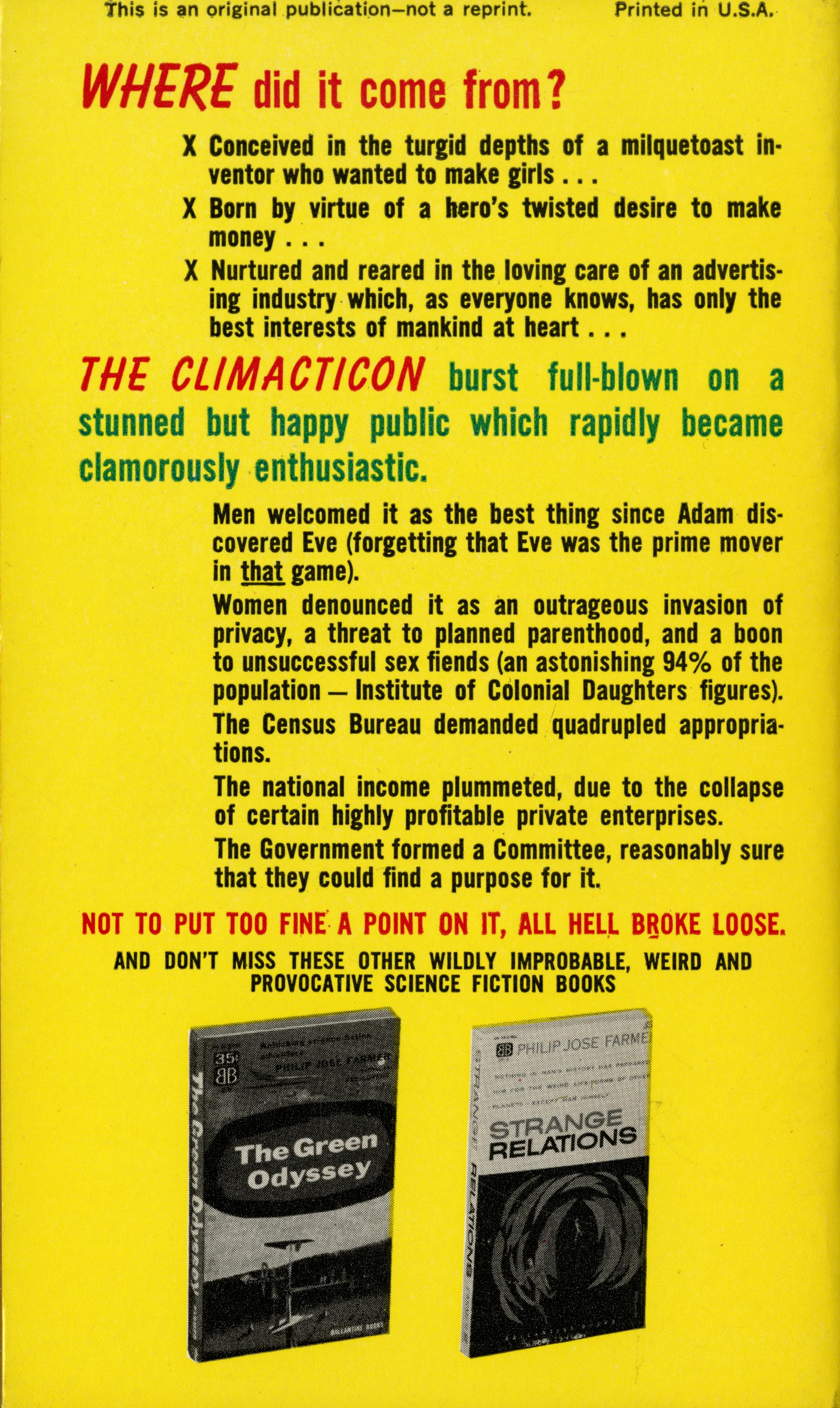 A science fiction fantasy about a machine that measures the intensity of female emotions, with a strongly satirical glance at Madison Avenue.