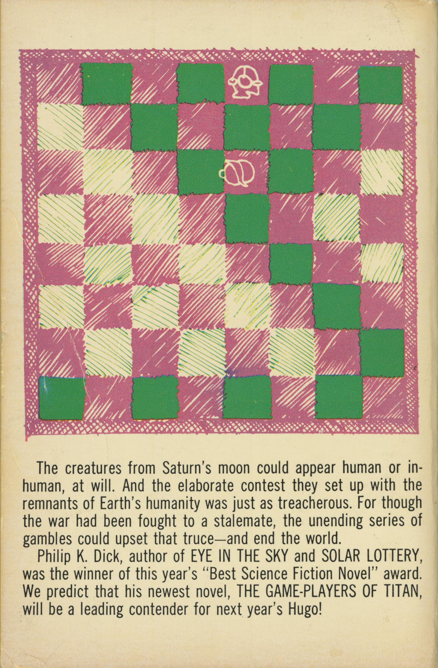 The creatures from Saturn's moon could appear human or inhuman, at will. And the elaborate contest they set up with the remnants of Earth's humanity was just as treacherous. For though the war had been fought to a stalemate, the unending series of gambles could upset that truce-and end the world.