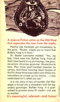The "civilized" government of the planet Missouri was overthrown by revolutionaries who have embraced the lifestyle and culture of the United States' Old West frontier. Suspicious of technology, the denizens of Missouri nevertheless ride robot horses and drink synthetic liquor to pass the time on a planet whose main source of income comes from exporting western souvenirs (i.e. miniature outhouses, wagons, revolvers, etc.), staging gunfights for tourists, and providing "living antiques" in the form of gunfighters being placed on other planets as zoo specimens.